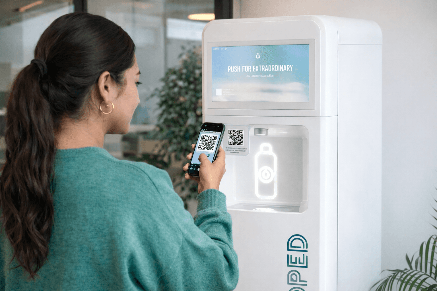 Escanea tu botella reutilizable y selecciona tu bebida en la estación Looped.